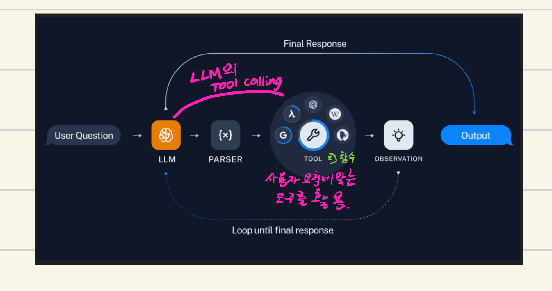 LLM은 사용자의 요청에 맞춰서 Tool을 고른다. 이것을 "Tool Calling"이라고 한다.