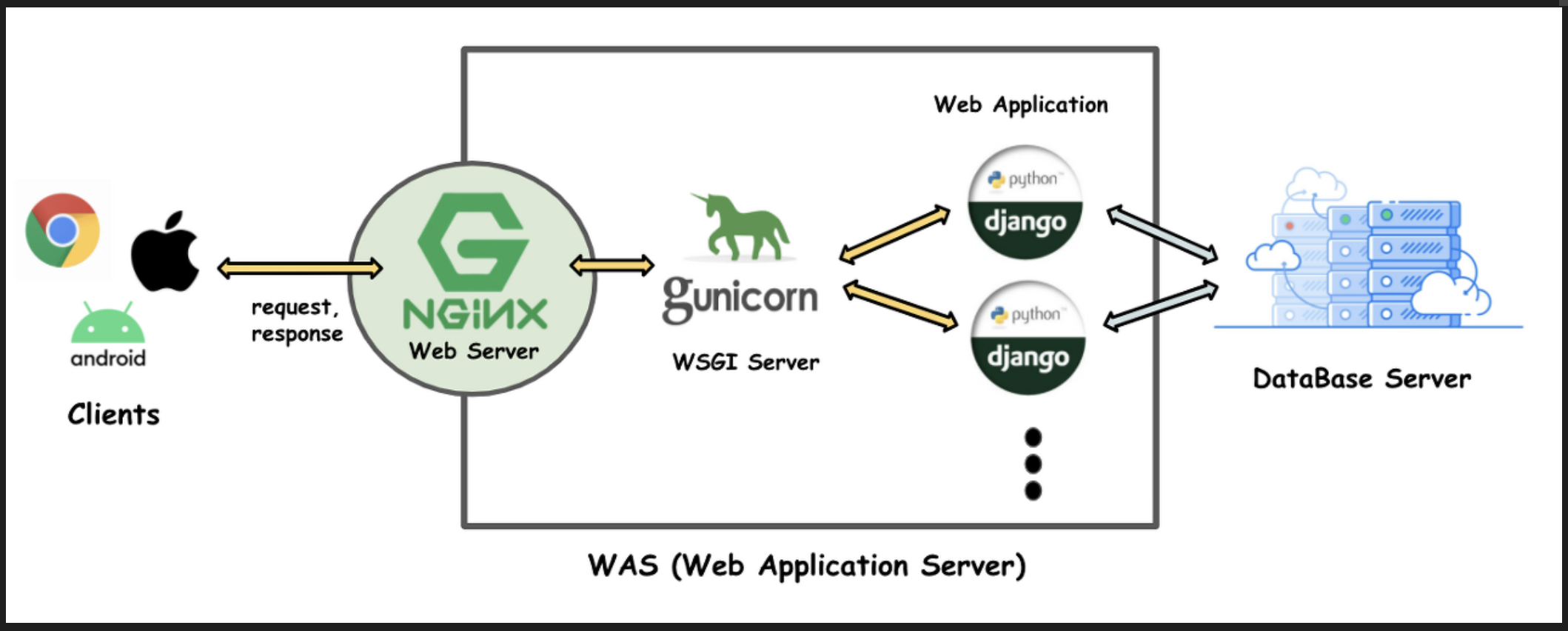 따라서 web server 역할로 많이 쓰이는 것이 Nginx이고, WSGI server로 많이 쓰이는 것이 gunicorn이라고 보면 된다.