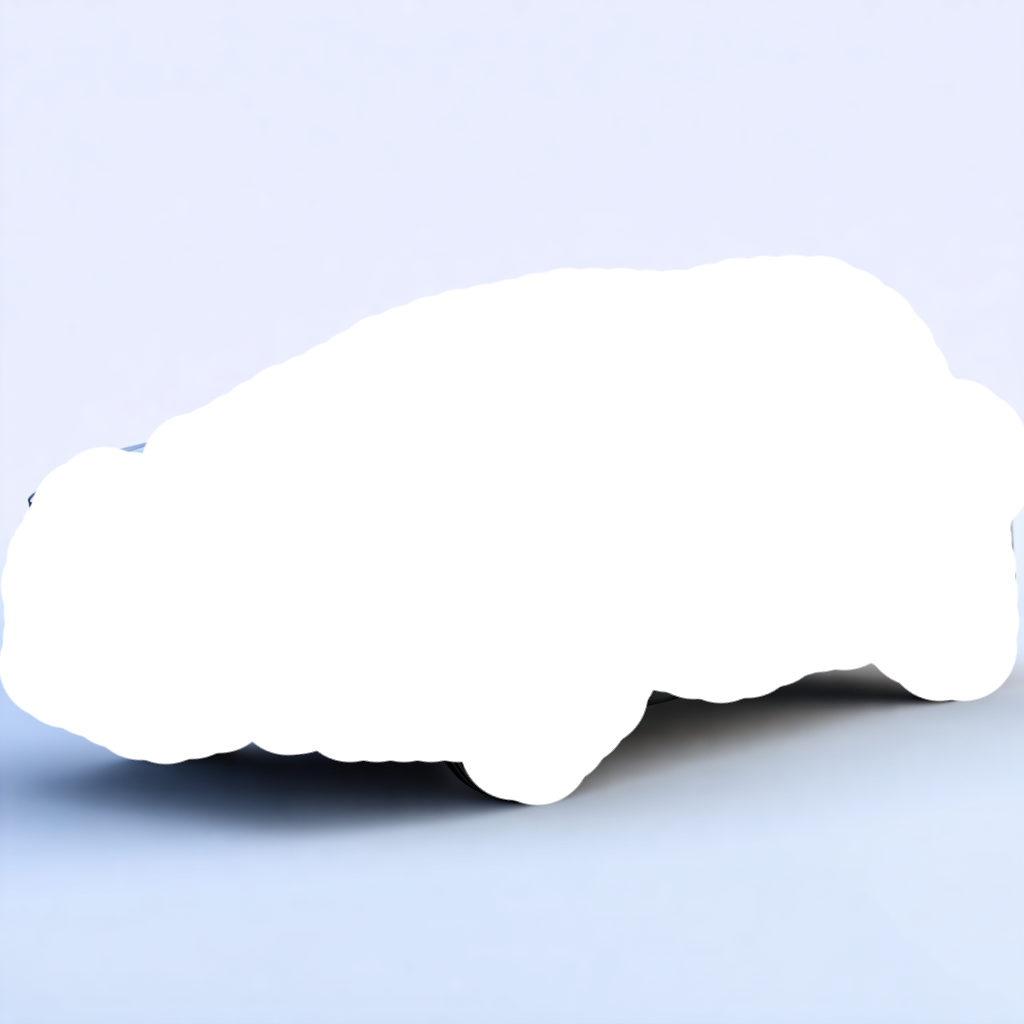 마스킹 범위를 자동차 전체로 넓혀봤다. 그리고 "make bumper triangle"이라고 입력했다. 그랬더니 너무 웃긴 결과가 도출됐다. 다시 봐도 어이가 없었다. 그래서 결국 깨달은 마스킹 범위는 아래에 설명하겠다.