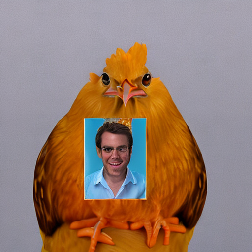 병아리 이미지를 마스킹해 보았다. 보시다시피 원본 이미지와 괴리감이 많~~~~~이 느껴진다. 처음 입력 데이터를 원본 이미지와 마스킹 이미지(바꾸고 싶은 곳을 흰색, 유지할 곳은 검은색으로 마스킹 후 저장한 이미지) 두 개로 입력한다. 그리고 위에 보이는 시행착오들이 결괏값으로 나온다. pormpt는 "change head to chicken"으로 입력했다. 참혹한 결과였다. 시행착오 1은 웬 출처모를 아저씨가 나왔다. 말도 안 됐다. 시행착오 2는 그나마 뭐가 잘 나왔다. 여기서 깨달은 바는 마스킹 범위이다. 마스킹 범위가 적절치 않아 저런 결과를 내보낸 것이다. 이 깨달음을 안고 다음 평가를 진행했다.
