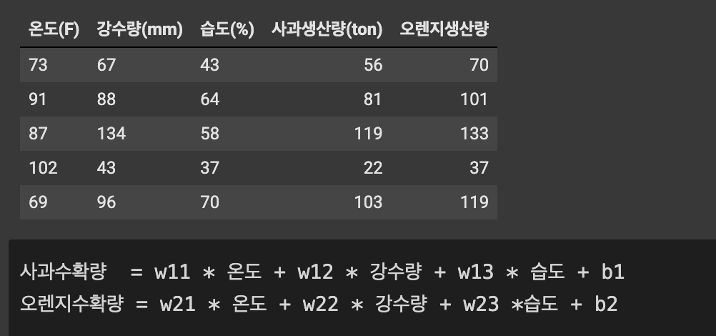 다중 입력에 따른 다중 출력을 하기 위해선, 합성곱을 실행해야 한다. 이를 위해 내적을 활용한다. 내적 자체를 이해하는 데에는 어렵지 않다. 다만 예측하는 모델의 정의 과정이 힘든 것이다. Weights와 Bias를 통해 세세하게 조절해 가며 지정해야 한다. 이때 중요한 요소가 차원이다. 입력할 feature 수와 출력할 feature 수를 고려해 차원 수를 맞춰야 올바른 예측이 이뤄진다.